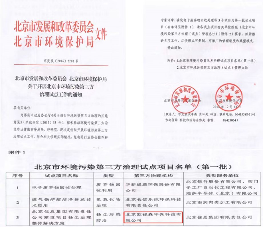 北京欧禄森环保科技有限公司为城市扬尘污染的预防和治理提供整体解决方案,是一家城市扬尘防治服务商。是北京市发改委和北京市生态环境局开展环境污染第三方治理试点工作的第一批扬尘污染防治第三方治理机构,也是北京市地方标准《建筑施工扬尘污染防治技术导则》编制时的书面征求意见单位。